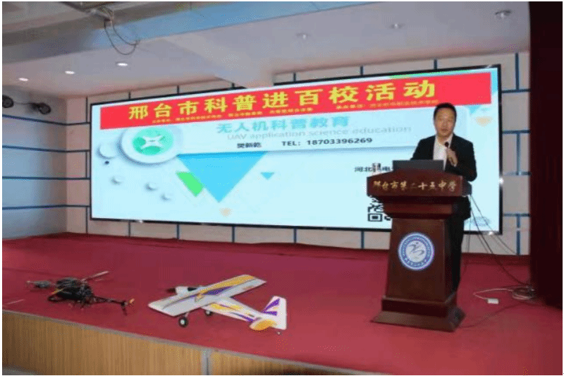 3.推动科普入校,开展各类科普活动。2021年积极举办“科普进百校”“科技活动周”等大型公益活动,在邢台市中小学普及无人机知识,推进科普进校园工作。2025年推出面向小学、初中、高中不同学龄阶段的无人机科普课程,团队师生在邢台市胜利小学、邢台市第十中学、邢台一中系统地开展了科普工作。